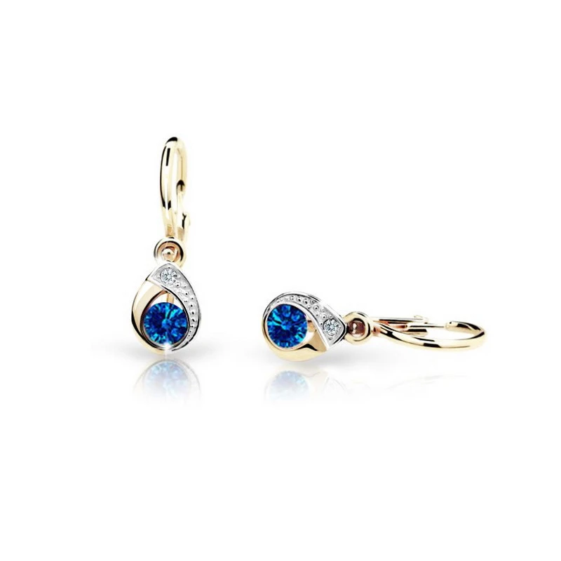 Detské náušnice zo zlata 585/000. Nádherné náušničky pre bábätká so zapínaním na detskú brizuru, ktorá deťom zabraňuje v ich jednoduchom otvorení. Luxusný vzhľad detských náušníc je podčiarknutý žiarivými kamienkami. Všetky detské šperky od Cutie Jewellery sú vyrábané Českej republike