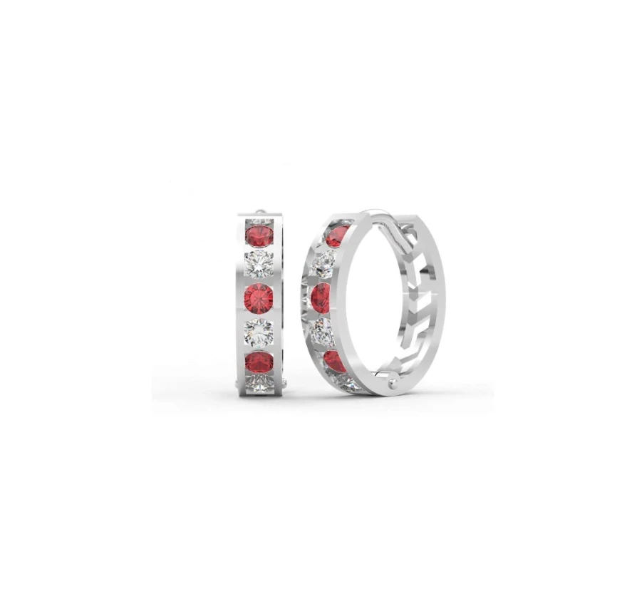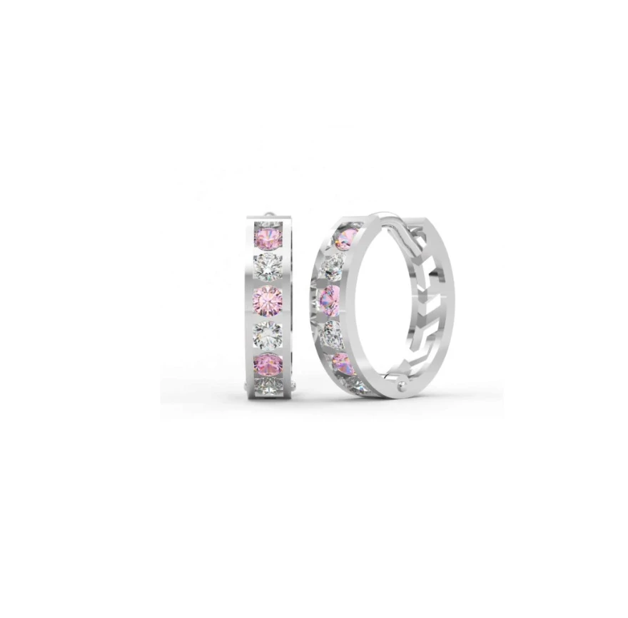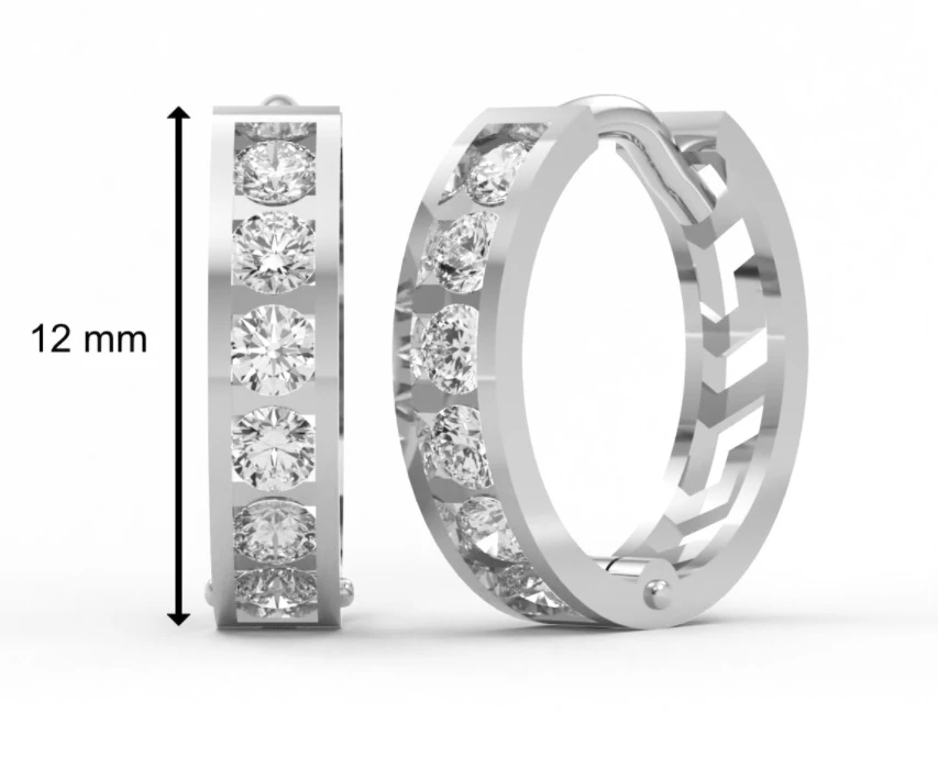 Detské náušnice z bieleho zlata krúžky osadené 12ti zirkónmi. Priemer náušníc 12mm. Náušnicové zapínanie je kĺbové. Dostupné farebné varianty zirkónov nájdete na podpornom obrázku.