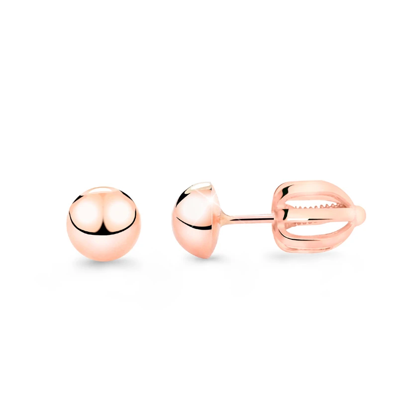 Náušnice na skrutku z ružového zlata rýdzosti 585/1000. Zlaté náušnice kôstky so zapínaním na skrutku. Priemer pologuličky 6mm. Priemer drieku 0,9mm.