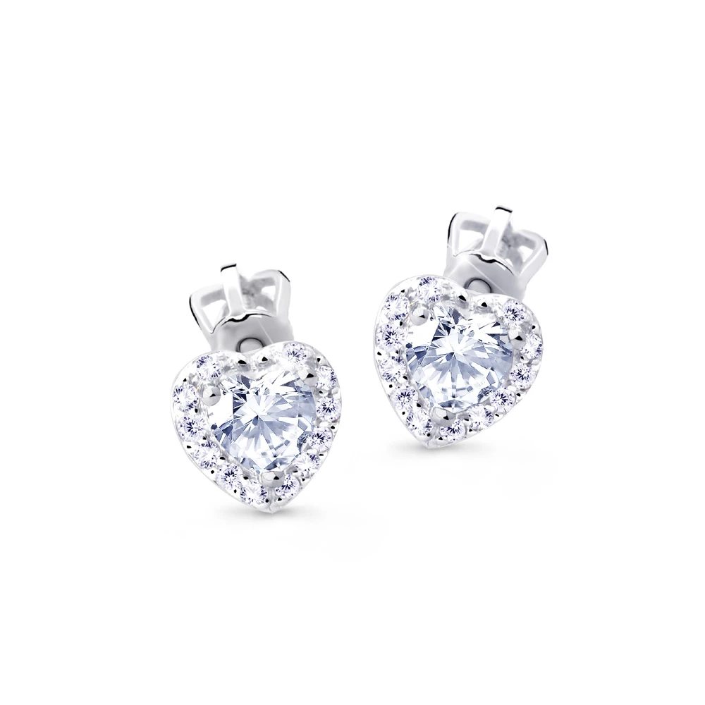 Zlaté náušnice kôstky z bieleho zlata rýdzosti 585/1000. Náušnice sú ozdobené zirkónmi a sú určené pre dievčatá a ženy. Náušnicové zapínanie je na skrutku. Rozmery náušníc 6,2x6,2mm, nájdete zobrazené na podpornej fotografii. Krásne zlaté náušnice so srdiečkami pre vaše drahé.