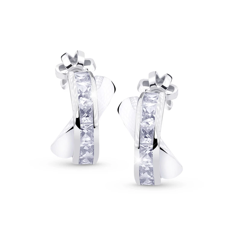 Zlaté náušnice so zirkónmi. Náušnice sú kombinácia bieleho zlata rýdzosti 585/1000 doplnené prvotriednymi zirkónmi. Náušnicové zapínanie je na skrutku. Rozmery náušníc nájdete zobrazené na podpornej fotografii.