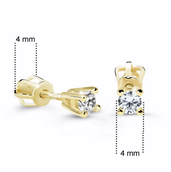 Zlaté náušnice so zirkónmi vyrobené zo žltého zlata 585/000. Priemer ozdoby náušníc 4 mm. Náušnicové zapínanie na je na skrutku. Priemer náušnicového zapínanie 4 mm.