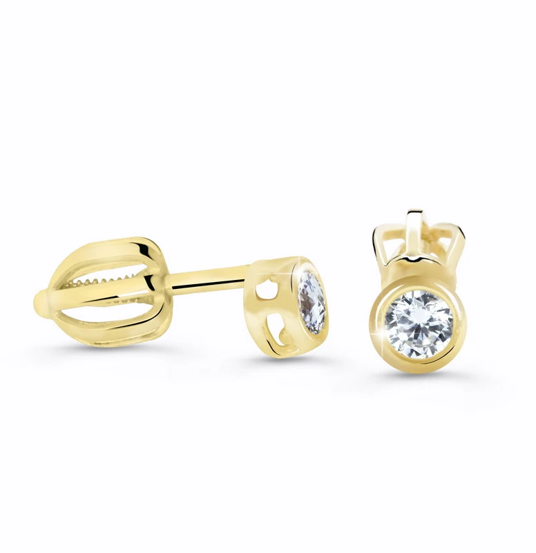 Zlaté náušnice na skrutku so zirkónmi od Českého výrobcu krásnych zlatých šperkov a zlatých detských náušníc Cutie Jewellery. Zlaté náušnice, ktoré vďaka náušnicovému zapínanie na skrutku netlačí a pohodlne sa nosí. Všetky zlaté šperky ponúkané našom obchode sú riadne označené podľa puncového zákona.