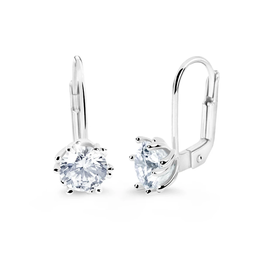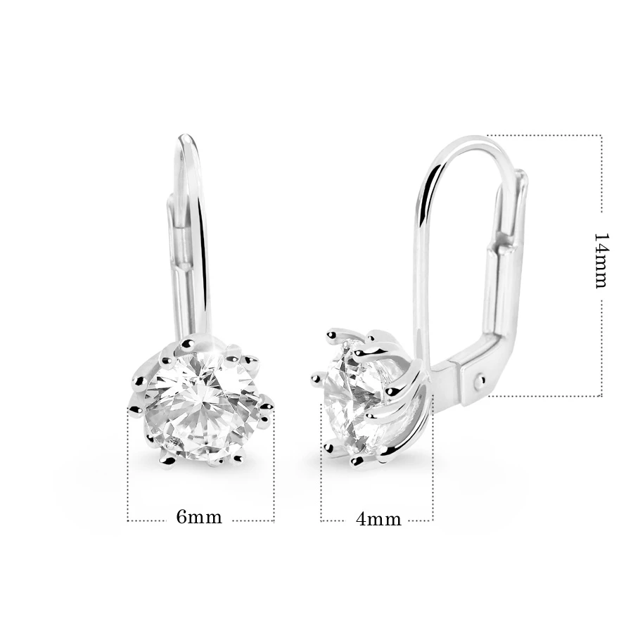 Zlaté náušnice so zirkónmi z bieleho zlata rýdzosti 585/1000. Elegantné zlaté visiace náušnice ozdobené 6mm zirkónmi. Náušnicové zapínanie je na klapku. Rozmery náušníc nájdete zobrazené na podpornej fotografii.