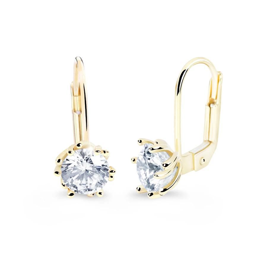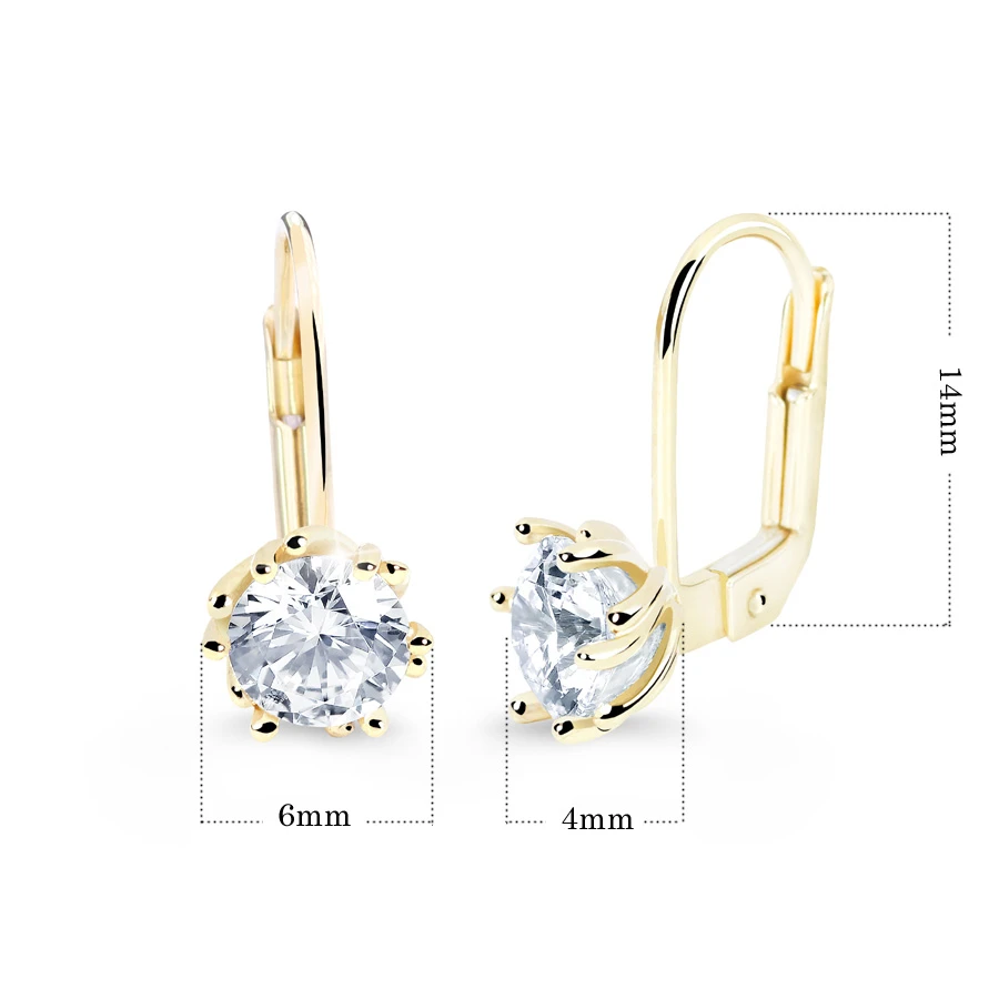 Zlaté náušnice so zirkónmi zo žltého zlata rýdzosti 585/1000. Elegantné zlaté visiace náušnice ozdobené 6mm zirkónmi. Náušnicové zapínanie je na klapku. Rozmery náušníc nájdete zobrazené na podpornej fotografii.