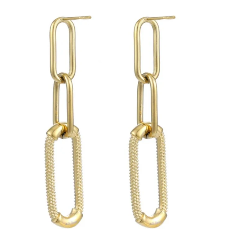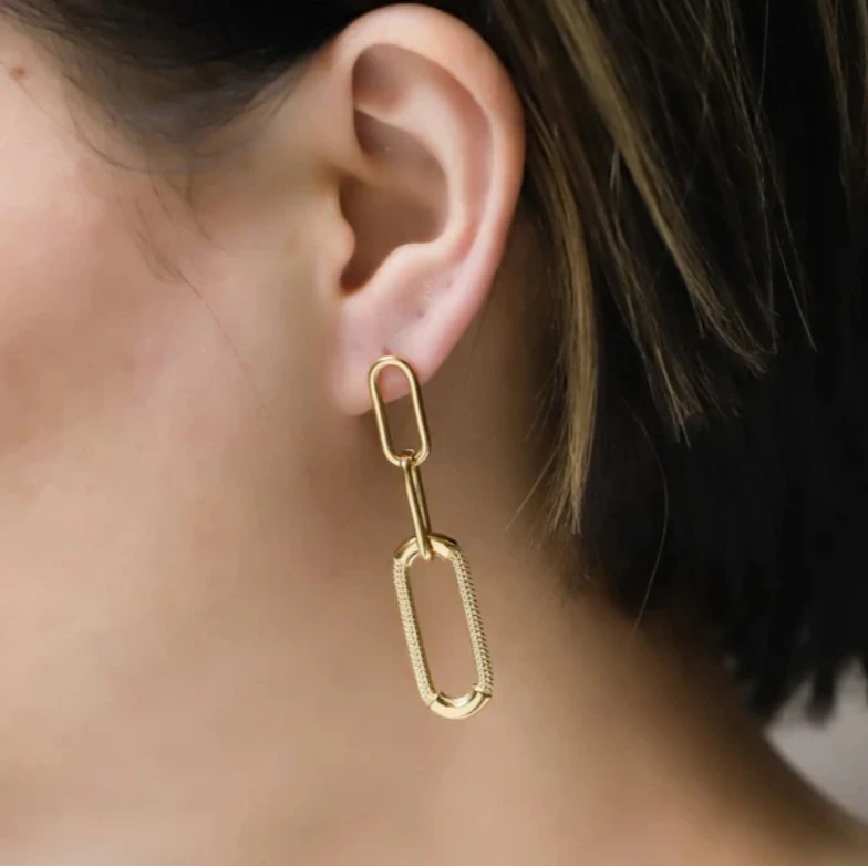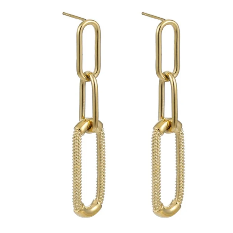 Pozlátené náušnice visiace z chirurgickej ocele, ktoré dodajú Vášmu vzhľadu ten správny šmrnc. Náušnice z chirurgickej ocele sú odolné a nehrozí pri nich riziko alergických reakcií. Tieto oceľové náušnice Vám budú robiť radosť po dlhú dobu. Ani údržba náušníc z chirurgickej ocele nie je náročná, stačí ich utrieť mäkkou handričkou. Pozlátené náušnice z chirurgickej ocele môžu predstavovať tip na krásny darček. Nie sú tieto visiace náušnice pre Vás to pravé? Skúste sa pozrieť na ďalšie oceľové náušnice z našej ponuky.