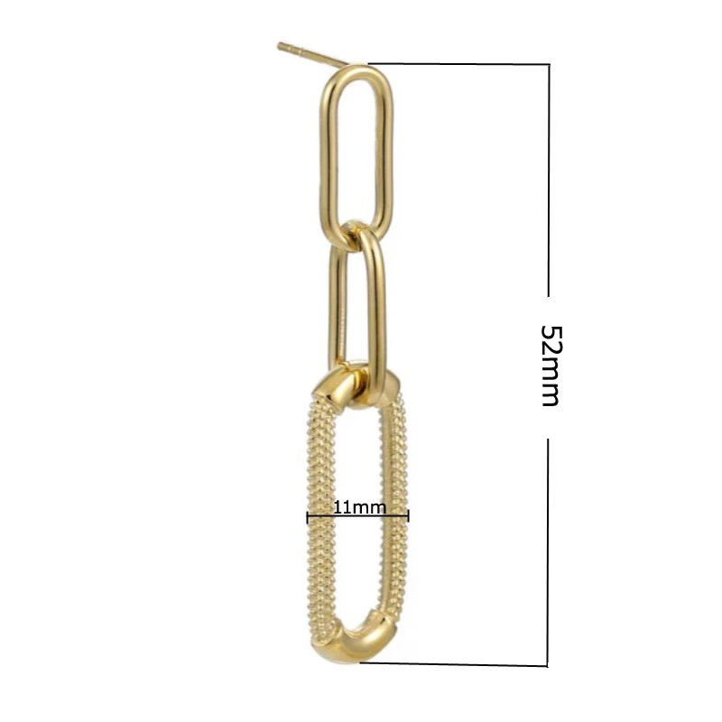 Pozlátené visiace náušnice z chirurgickej ocele. Náušnice sú pozlátené technológiou PVD. Celková dĺžka náušníc 52mm. Náušnicové zapínanie je na puzetky. Uvedená cena platí za pár.