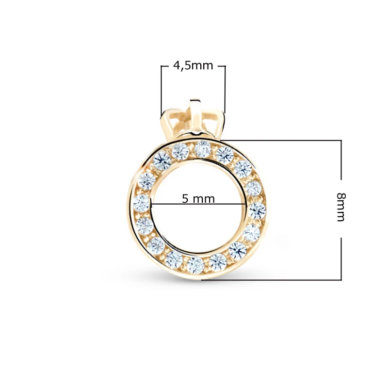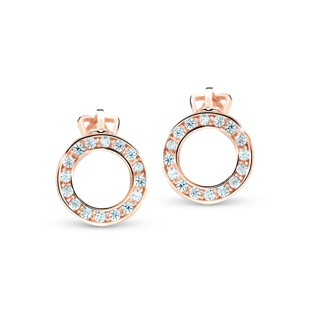 Náušnice so zirkónmi vyrobené z ružového zlata 585/1000. Náušnice sú ozdobené prvotriednymi zirkónmi. Náušnicové zapínanie je na praktickú skrutku. Vonkajší priemer náušníc 8 mm. Rozmery náušníc nájdete vyobrazené na podpornej fotografii.