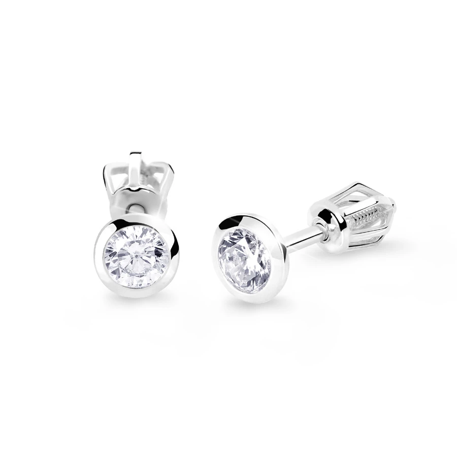 Náušnice z bieleho zlata kôstky. Zlaté náušnice so zirkónmi, náušnicové zapínanie je na skrutku. Rozmery náušníc nájdete zobrazené na podpornej fotografii.