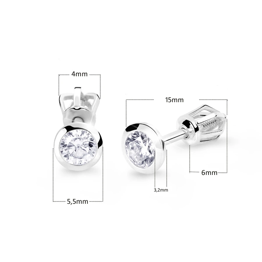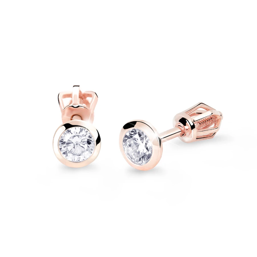 Náušnice z ružového zlata so zirkónmi. Náušnicové zapínanie je na skrutku. Rozmery náušníc nájdete zobrazené na podpornej fotografii.