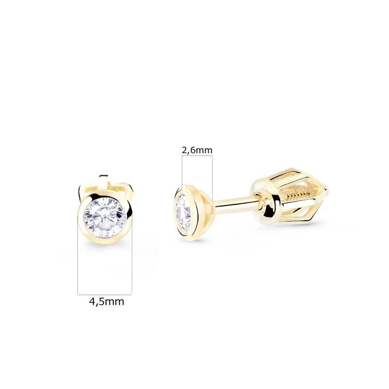 Náušnice z ružového zlata kôstky. Zlaté náušnice so zirkónmi, náušnicové zapínanie je na skrutku. Priemer ozdoby náušníc 4,5mm. Rozmery náušníc nájdete zobrazené na podpornej fotografii.