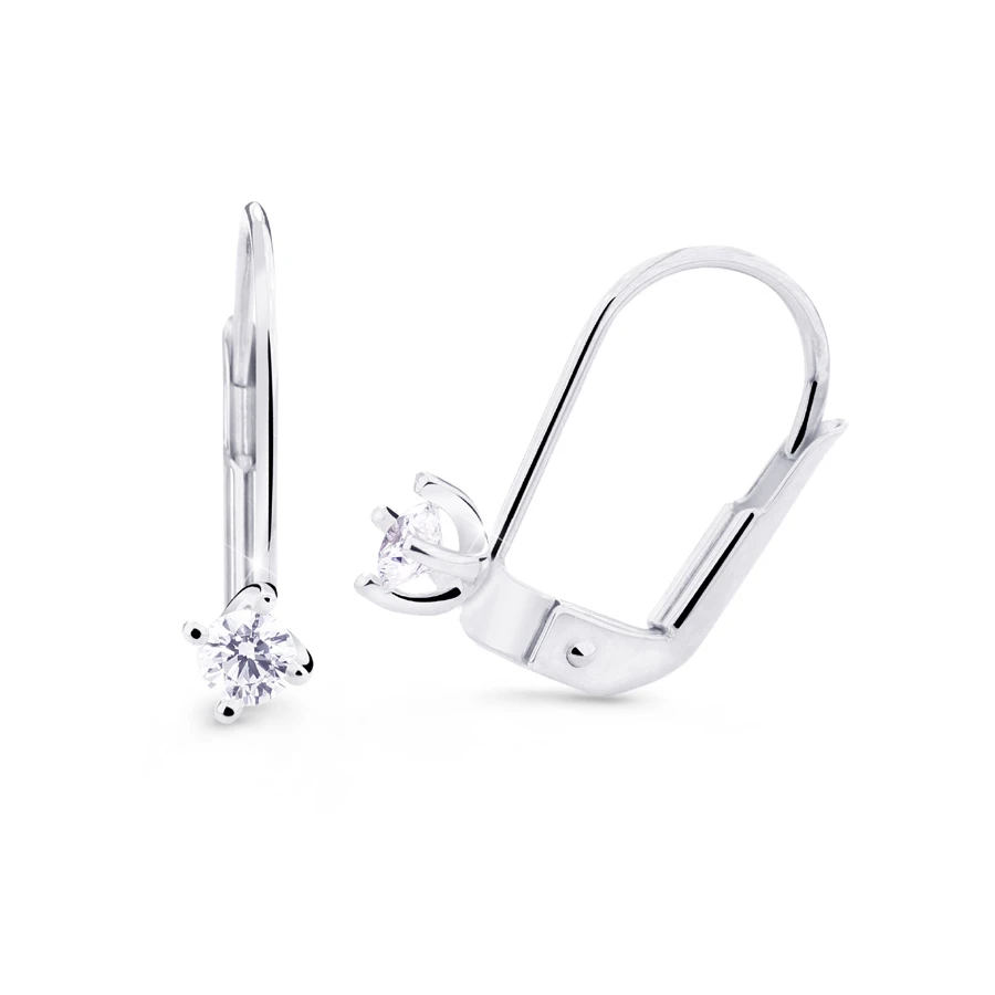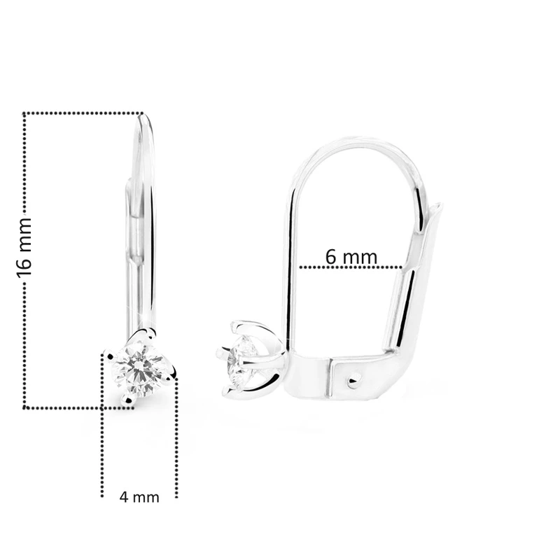 Náušnice z bieleho zlata rýdzosti 585/000. Zlaté náušnice so zirkónmi so zapínaním na klapku. Priemer ozdoby so zirkónom 4mm. Rozmery náušnic nájdete zobrazené na podporné fotografiu.