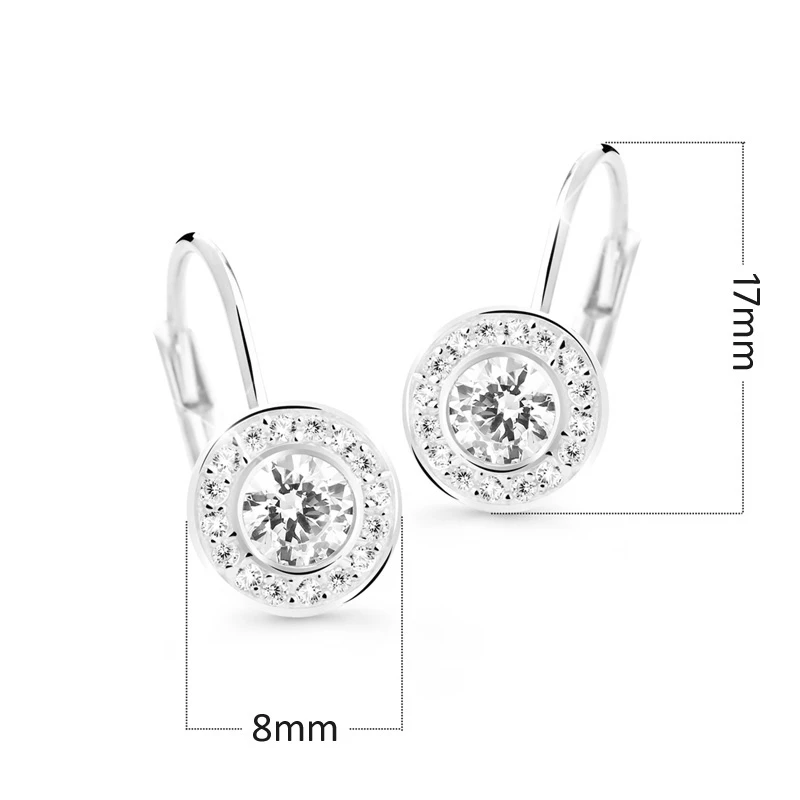 Zlaté náušnice z bieleho zlata osadené zirkónmi. Krásne dámske náušnice vyrobené zo žltého zlata rýdzosti 585/000. Rozmery náušníc nájdete zobrazené na podpornej fotografii. Náušnicové zapínanie je na klapku.