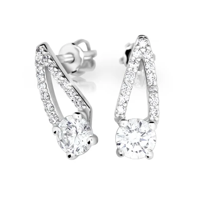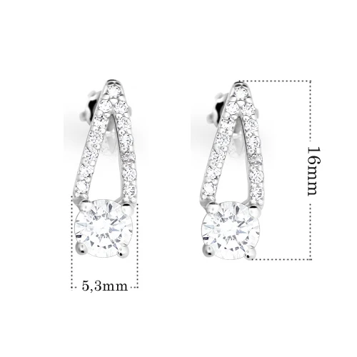 Náušnice z bieleho zlata rýdzosti 585/1000 so zirkónmi. Krásne dámske náušnice so zapínaním na skrutku. Rozmer náušníc 16mm x5,3 mm nájdete zobrazený na podpornej fotografii. Elegantné zlaté visiace náušnice pre ženy so žiarivými kamienkami.