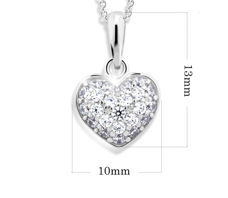 Prívesok srdiečko z bieleho zlata rýdzosti 585/1000. Prívesok je celý ozdobený zirkónmi. Závesným očkom na prívesku je možné pretiahnuť zlatú retiazku s priemerom do 2,0mm. Srdiečko má rozmer 8x10mm. Celkové rozmery prívesku nájdete zobrazené na podpornej fotografii.