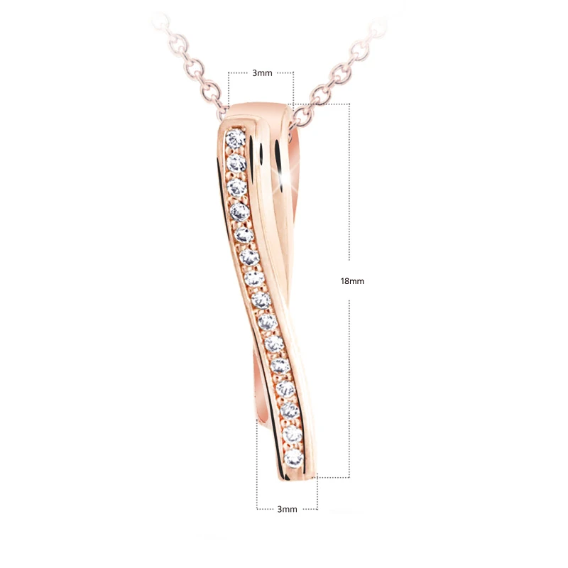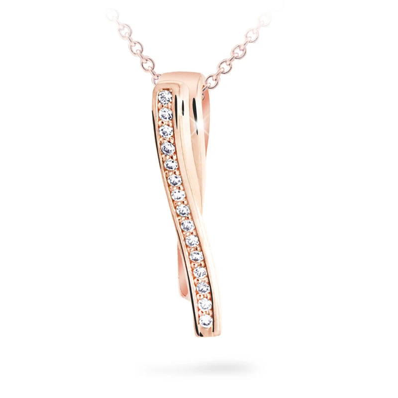 Prívesok so zirkónmi z ružového zlata rýdzosti 585/1000. Prívesok je široký 3mm, výška prívesku 13mm. Rozmery prívesku nájdete na podpornej fotografii. Zlatú retiazku vhodnú k prívesku nájdete v kategórii retiazky. Prívesok zadarmo zabalíme do darčekovej krabičky a papierovej tašky.