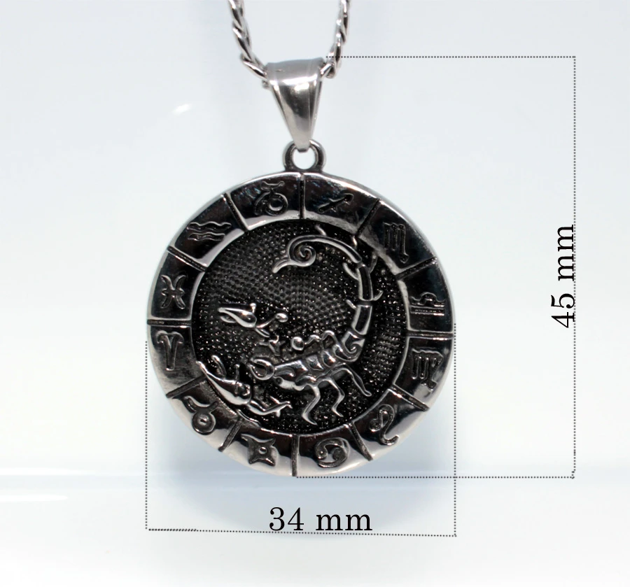 Prívesok so znamením panny (23.8- 22.9) Prívesok je vyrobený z chirurgickej ocele. Znamenie panny je "lemované" symbolmi ostatných znamení zverokruhu. Súčasťou znamenia je retiazka z chirurgickej ocele vzor pancr so zapínaním na karabínu, dlhý 60cm. Prívesok má priemer 34mm. Na prianie je možné retiazku zadarmo skrátiť.