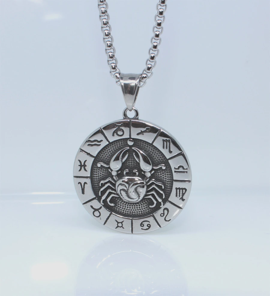 Prívesok so znamením raka (22.6 - 22.7) Prívesok je vyrobený z chirurgickej ocele. Znamenie raka je "lemované" symbolmi ostatných znamení zverokruhu. Súčasťou znamenia je retiazka z chirurgickej ocele vzor pancr so zapínaním na karabínu, dlhý 60cm. Prívesok má priemer 34mm. Na prianie je možné retiazku zadarmo skrátiť.