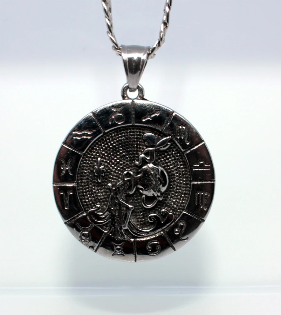 Prívesok so znamením vodnára (21.1- 20.2) Prívesok je vyrobený z chirurgickej ocele. Znamenie vodnára je "lemované" symbolmi ostatných znamení zverokruhu. Súčasťou znamenia je retiazka z chirurgickej ocele vzor pancr so zapínaním na karabínu, dlhý 60cm. Prívesok má priemer 34mm. Na prianie je možné retiazku zadarmo skrátiť.